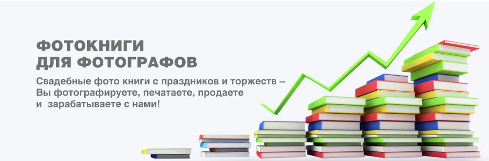 Печать фотокниг для малого бизнеса и частных фотографов. Печатайте эксклюзивные фотокниги штучно или небольшими тиражами в высоком качестве для Ваших клиентов. Свадебные фотокниги, фоторепортажи с праздников и торжеств - Вы фотографируете, печатаете, продаете и зарабатываете с нами. Сотрудничество подразумевает скидки!