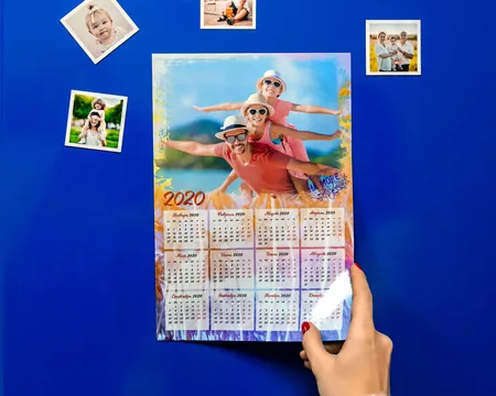 Фотокалендарь - магнит - новинка нашего проекта. Альбомикс уже давно изготавливает магниты с фотографиями, и по просьбам наших клиентов мы запустили новый продукт - календарь-магнит А4. По сути, это мини-плакат, который можно создать в нашем онлайн-редакторе календаря. Загрузите одну или несколько фотографий, разместите на странице календаря, подберите подходящий фон, добавьте тест и декора, - и вот замечательный подарок готов! В чем преимущества такого календаря? Конечно, в его универсальности, он будет прекрасно смотреться в любой квартире, на любом холодильнике ему найдется место. Он всегда будет под рукой в прямом смысле слова, точнее, под ручкой холодильника :) Памятные фотографии будут радовать в течение года, а когда даты на календаре закончатся, просто отрежьте верхнюю часть с фотографиями, и календарь превратится в прекрасный фотомагнит, который будет продолжать радовать вас и дальше.